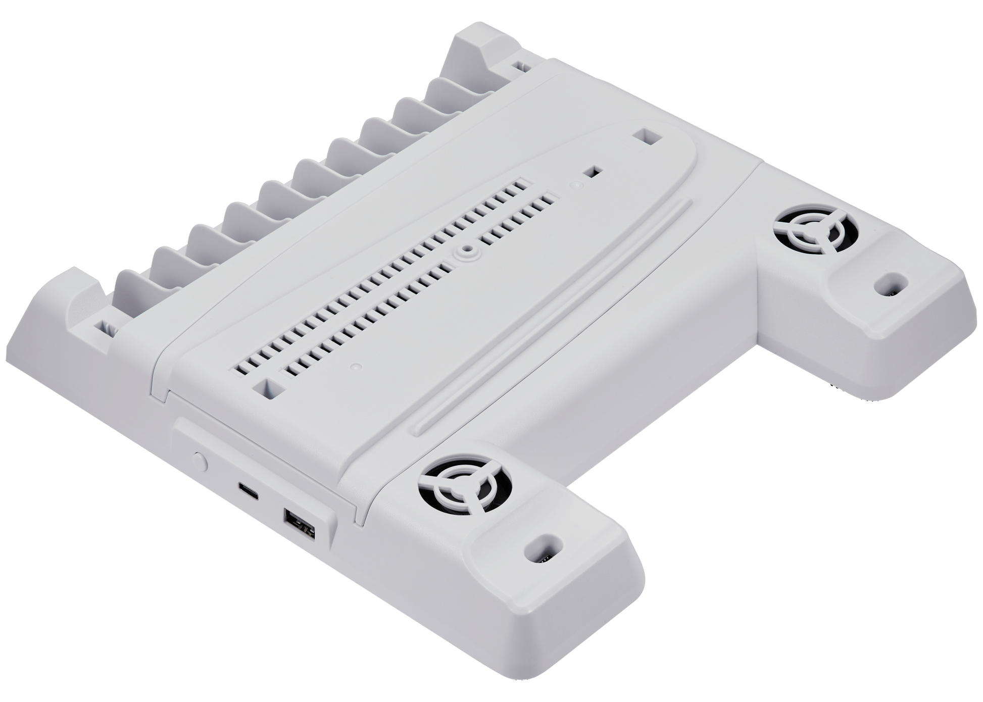 Keep your PlayStation 5, Slim, or Pro running cool while charging controllers and powering accessories. This multifunctional stand features integrated cooling fans to prevent thermal throttling during extended gaming sessions, multiple USB ports for simultaneous charging, and a sturdy design that accommodates all PS5 models. Perfect for serious gamers who demand optimal performance and convenience in one compact solution.